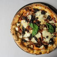 Clonakilty black pudding, crispy pancetta, mixed wild mushooms, tomato sauce, fiore di latte mozzaralla, basil leaf and garlic.
